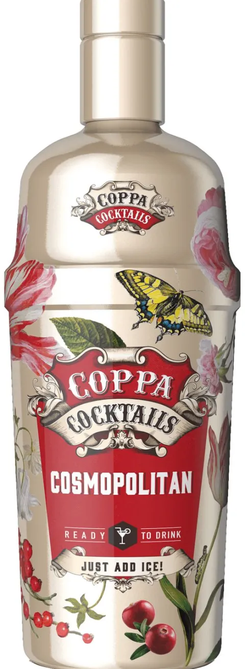 | Description | Coppa Cocktails Cosmopolitan een klassieke cocktail gemixt met premium wodka en de hedendaagse smaken van Triple Sec, cranberrysap en limoensap. Gecreëerd in samenwerking met bekroonde bartenders. |